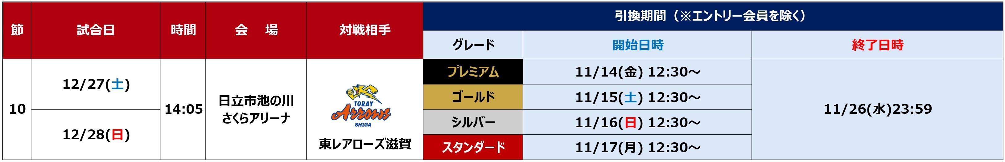 「2025-26 大同生命SV.LEAGUE WOMENレギュラーシーズン第10節(12月27日・28日)」 日立大会のチケット販売・ホームゲーム情報に関しましてご案内いたします!