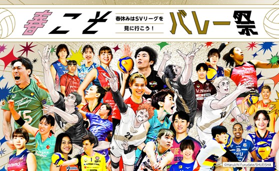「春こそバレー祭」の1つとして、集英社『ハイキュー!!』(著者・古舘春一)とのスペシャルコラボレーションを実施いたします。“春休みこそバレーを楽しんでほしい”という思いを込めて、初めての試合観戦でも楽しめる取り組みを実施予定ですので、ぜひ春休みはSV.LEAGUEの試合観戦にお越しください。