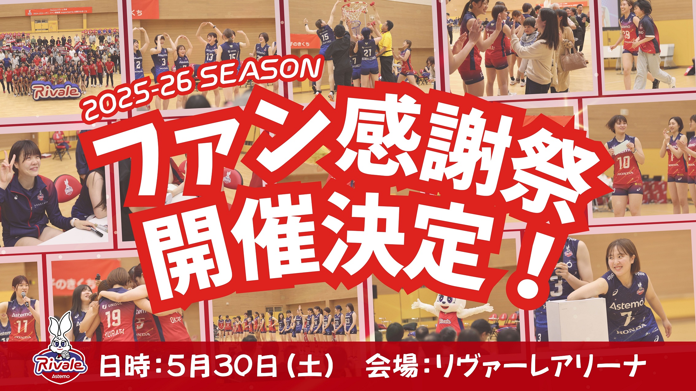 この度、5月30日(土)にリヴァーレアリーナにて、『2025-26シーズン ファン感謝祭』を開催することが決定しましたのでお知らせいたします!
