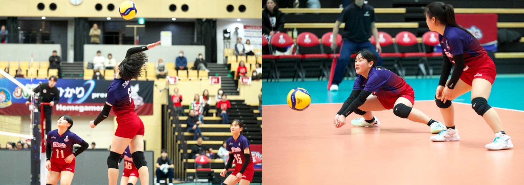 第1セットは、緊張から硬くなる場面も見られましたが、サーブを起点に徐々にリズムをつかむと、次第に表情も和らぎ、声を掛け合いながらリヴァーレらしい元気いっぱいのプレーを展開することができました。