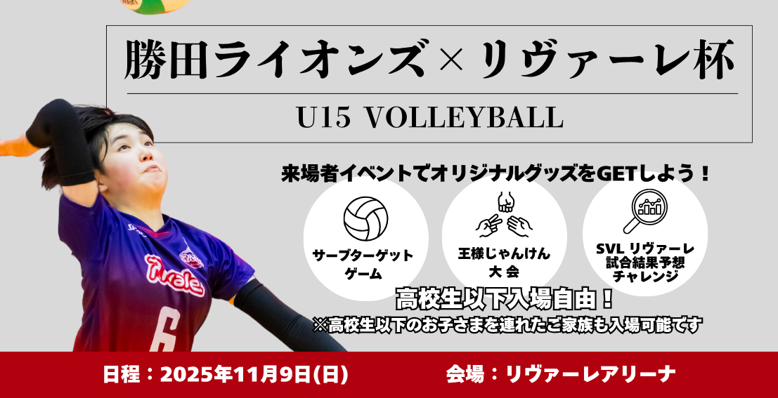 11月9日(日)に勝田ライオンズ×リヴァーレ杯 U15バレーボール大会の開催が決定いたしました!