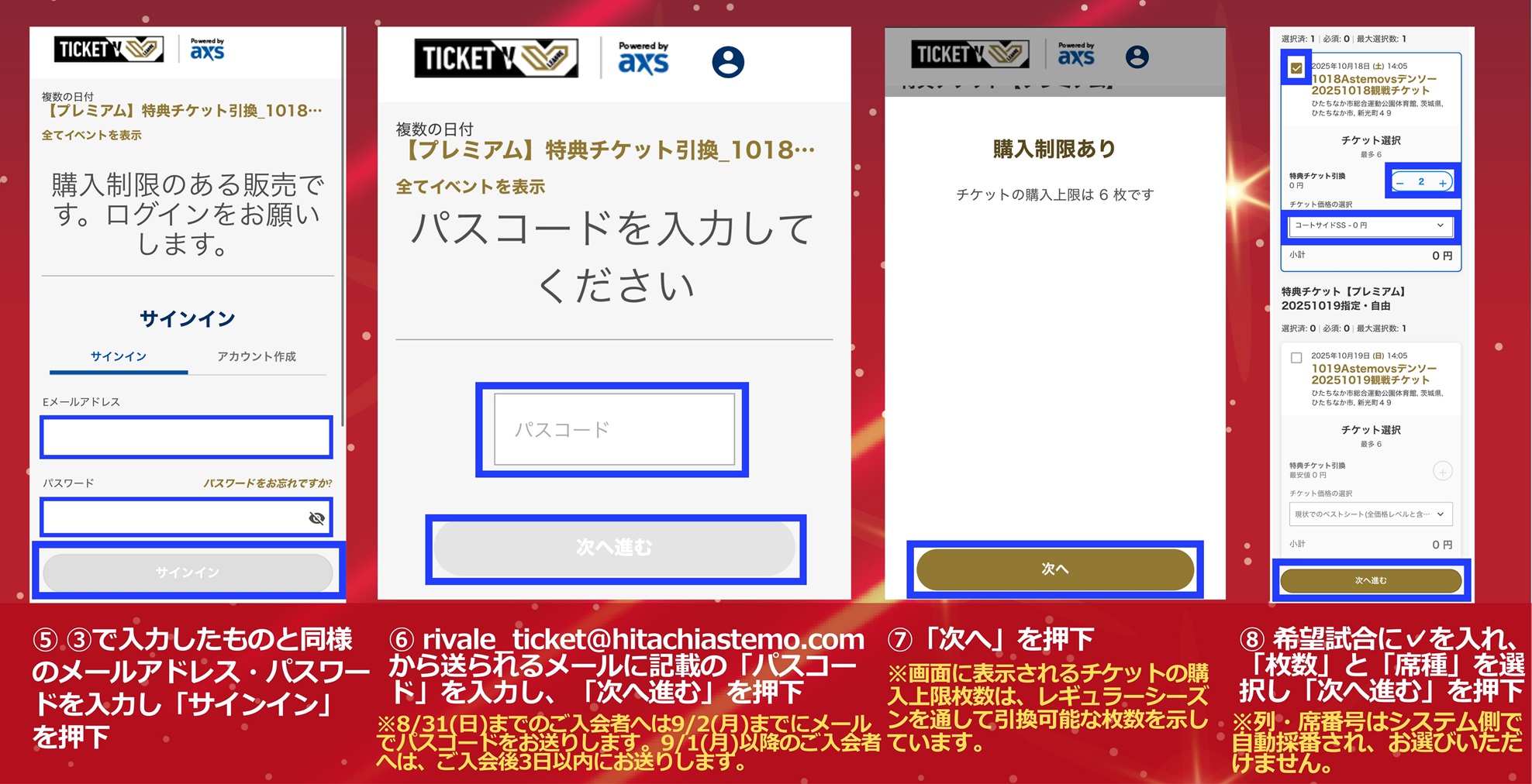 ※別途、「VメンバーID」及び「AXS」のアカウント登録(無料)が必要となります。新規登録・登録方法はコチラ!
