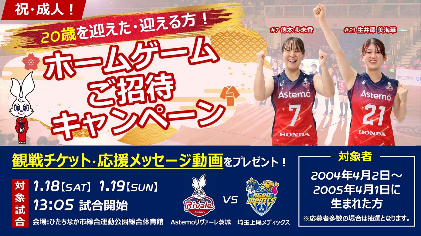 「2024-25 大同生命SV.LEAGUE WOMENレギュラーシーズン第13節(1月18日、19日)」ひたちなか大会のチケット販売及びホームゲーム情報に関しましてご案内をさせていただきます。