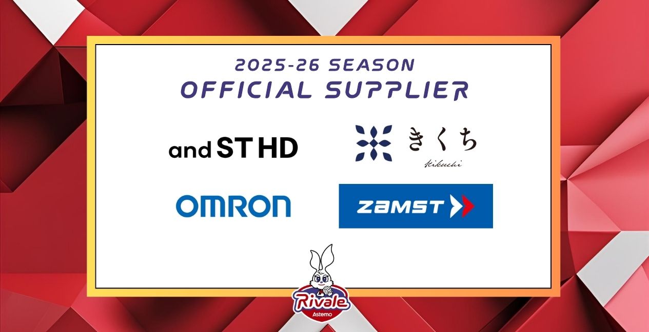 日頃よりAstemoリヴァーレ茨城への温かいご声援をいただき、感謝申し上げます。 Astemoリヴァーレ茨城は株式会社アンドエスティHD 様、株式会社きくち 様、オムロン ヘルスケア株式会社 様、日本シグマックス株式会社 様と2025-26シーズンも引き続きオフィシャルサプライヤー契約を締結いたしましたのでお知らせいたします。