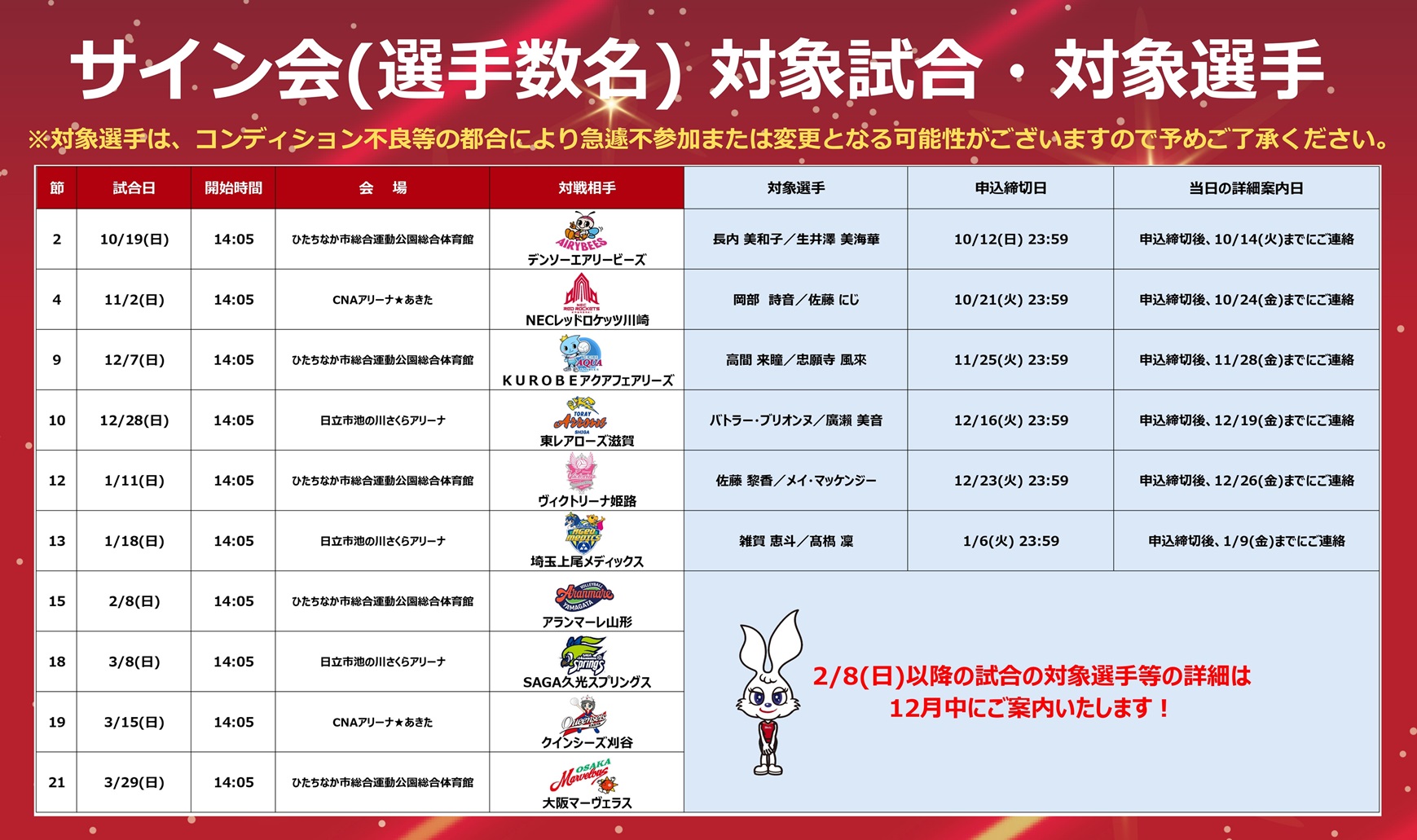 ・試合終了後のケアなどにより、サイン会開始まで少々お待ちいただく可能性がございますので予めご了承ください。