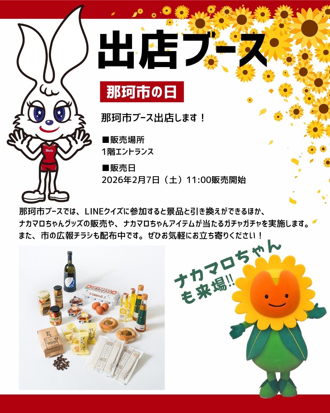 ナカマロちゃんグッズの販売や、ナカマロちゃんアイテムが当たるガチャガチャを実施します。