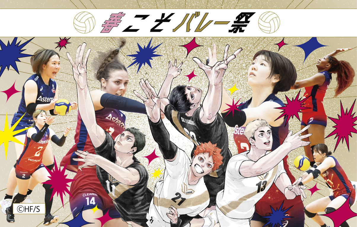 「春こそバレー祭」の1つとして、集英社『ハイキュー!!』(著者・古舘春一)とのスペシャルコラボレーションを実施いたします。“春休みこそバレーを楽しんでほしい”という思いを込めて、初めての試合観戦でも楽しめる取り組みを実施予定ですので、ぜひ春休みはSV.LEAGUEの試合観戦にお越しください。