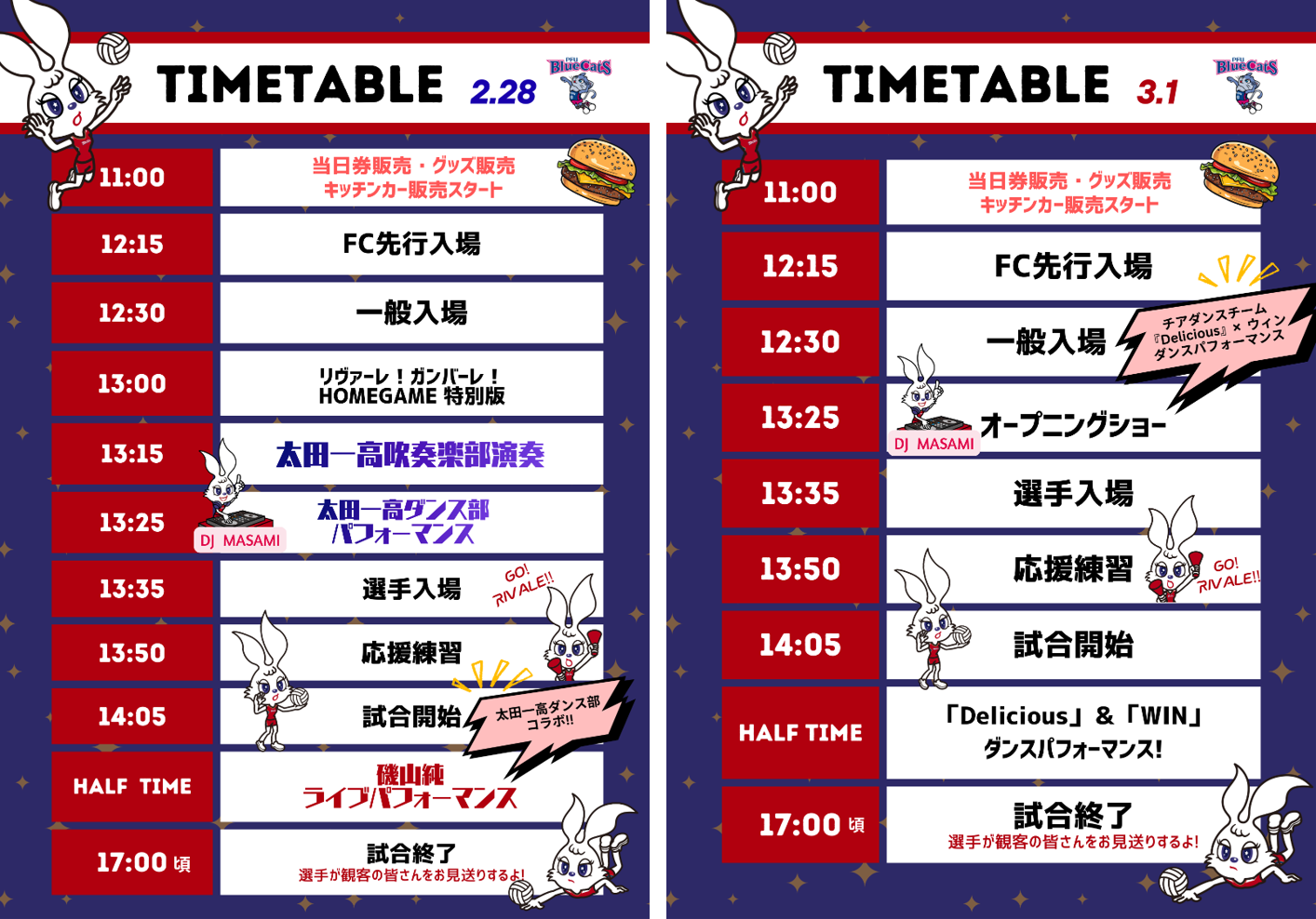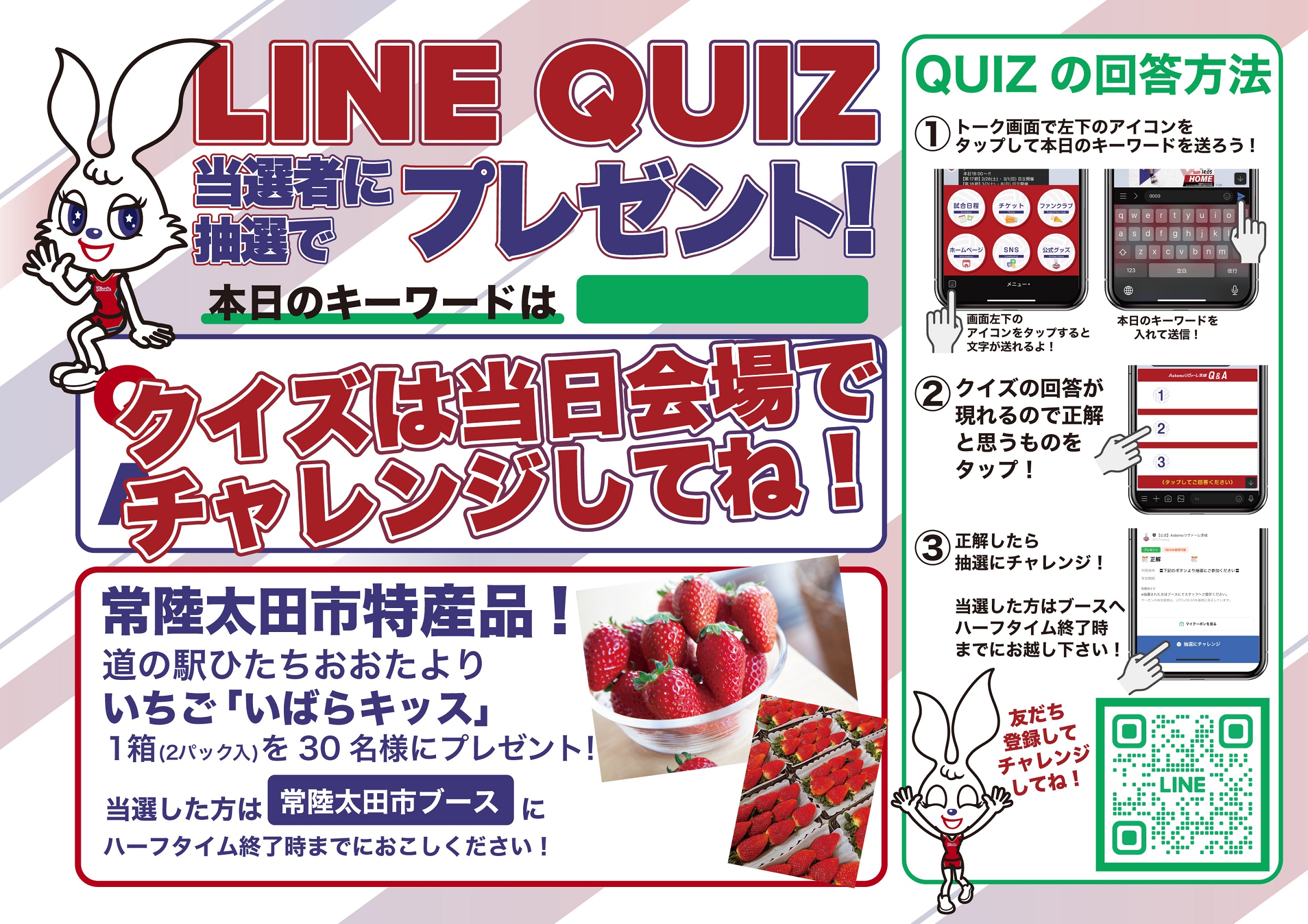 2月28日(土)・3月1日(日)の日立開催ホームゲームを含むホームゲーム全22試合に、