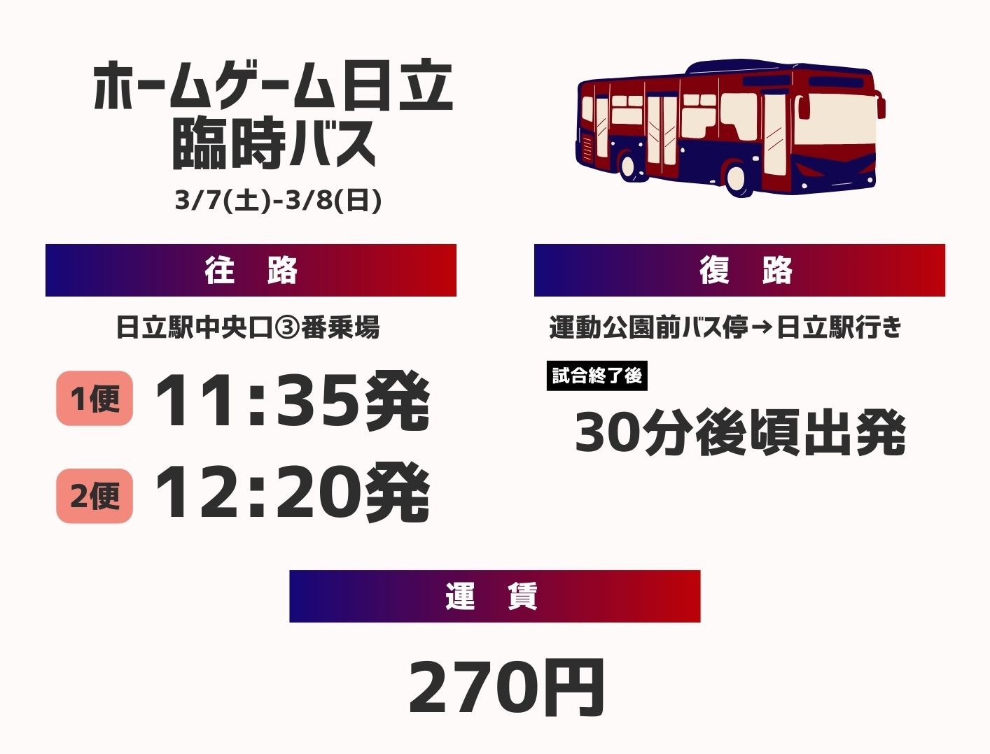 3月7日(土)・8日(日)の日立開催ホームゲームを含むホームゲーム全22試合に、