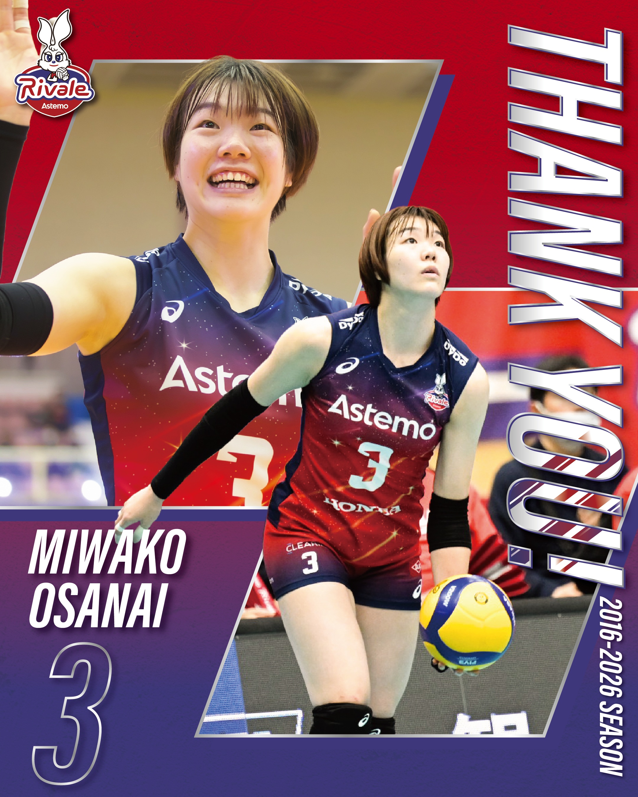 日頃からAstemoリヴァーレ茨城への温かいご声援をいただき、感謝申し上げます。 この度、長内 美和子 選手がIBK企業銀行アルトス(韓国)へレンタル移籍をすることになりましたので、お知らせいたします。
