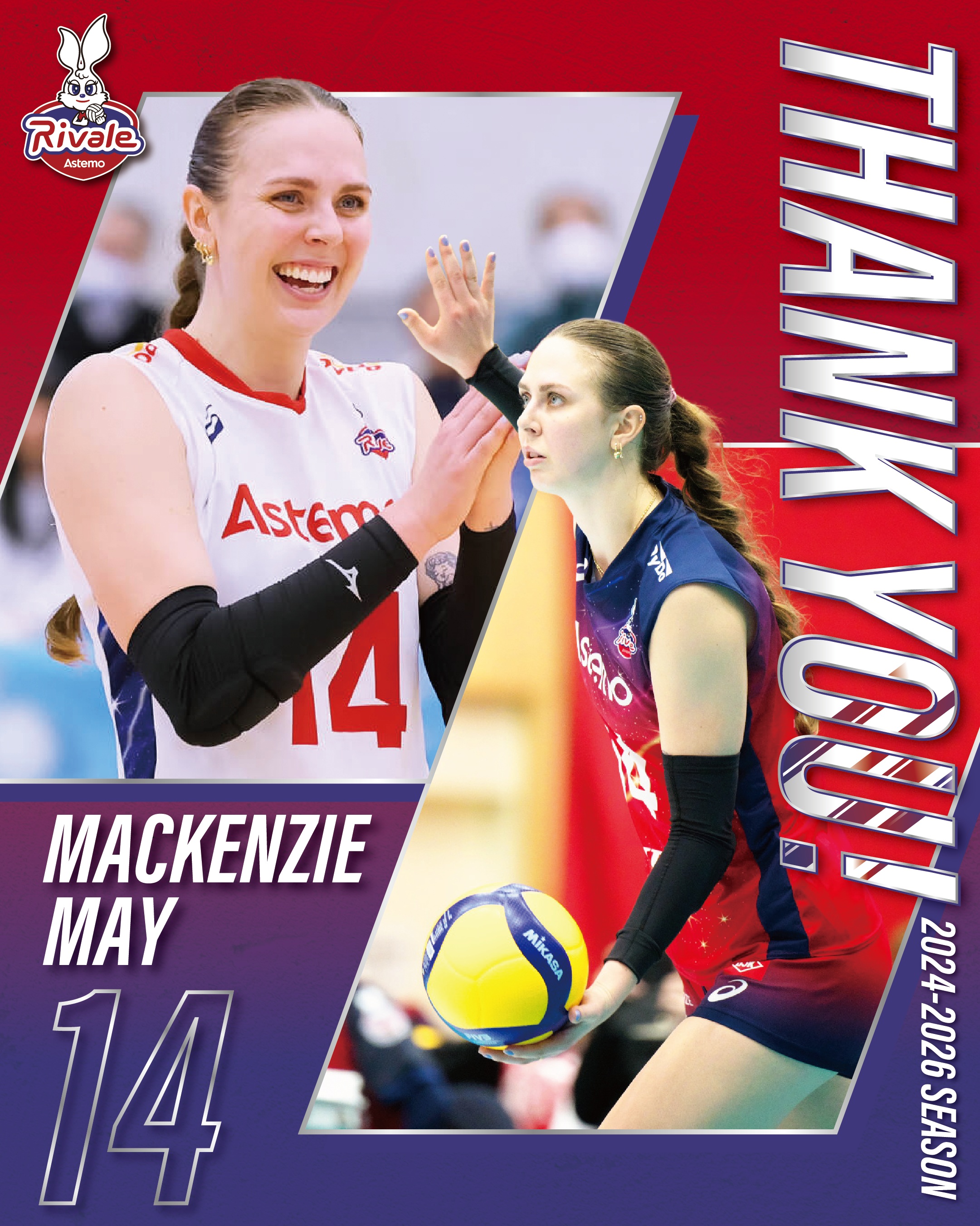この度、雑賀恵斗 選手、ブリオンヌ・バトラー選手、マッケンジー・メイ選手、高間来瞳 選手、倉田朱里 選手が2025-26シーズンをもちまして、退団することとなりましたのでお知らせいたします。